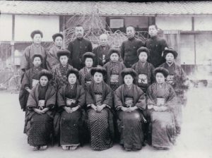 写真の卒業生は皆、当時流行で、女子学生の代名詞にもなった廂髪(ひさしがみ)スタイル。
